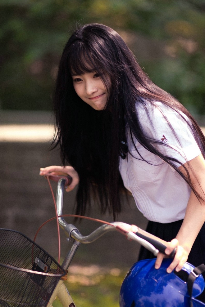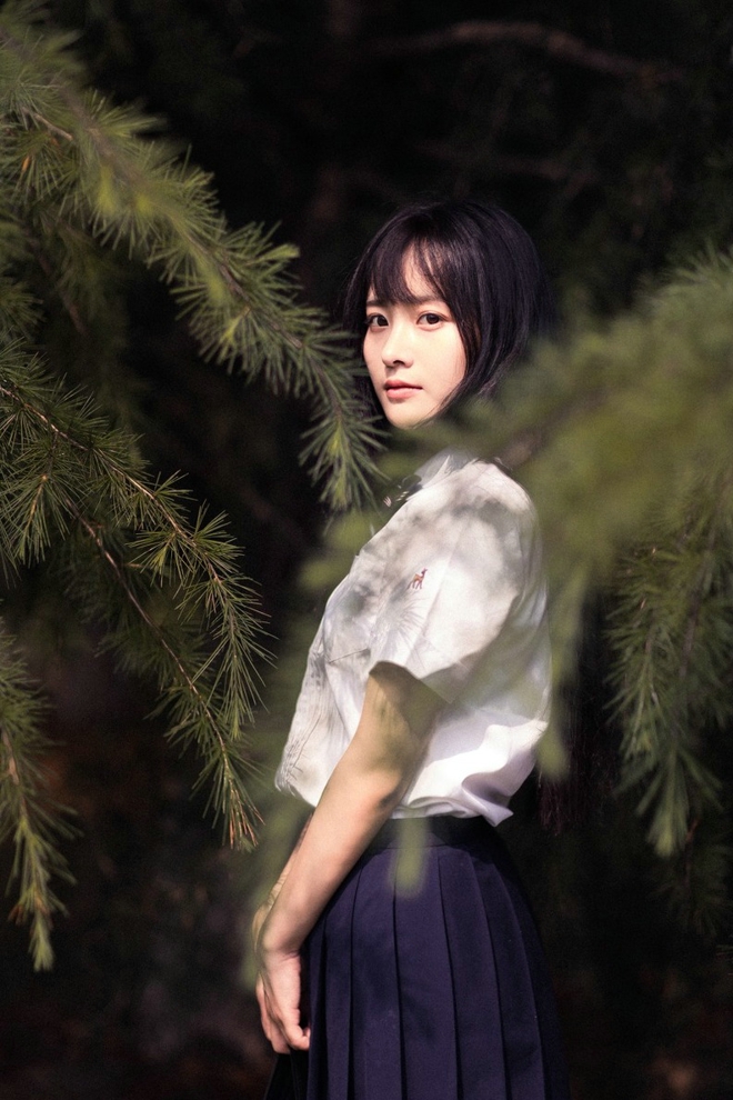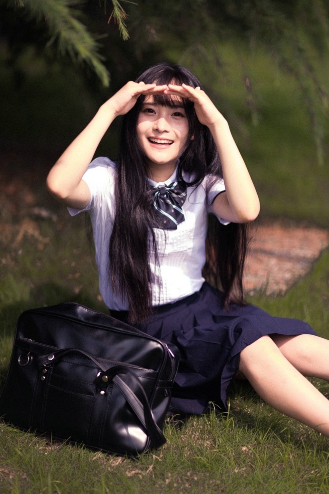 清纯阳光靓丽直发美女学生装短裙清新户外娇巧甜美阳光唯美写真